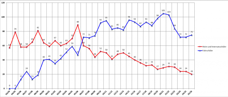 Schülerzahlen von 1993 bis 2025/26